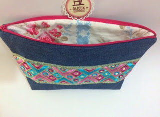 Quando vi esta fita, que achei lindíssima, pensei logo em fazer uma aplicação em ganga e fazer uma bolsa.